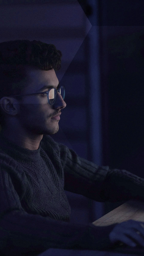 Man working in the dark